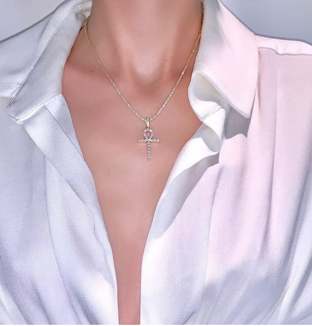 Our Aaliyah ankh cross pendant blends ancient symbolism with modern elegance. Representing eternal life and spiritual energy, this timeless piece is crafted with fine attention to detail for a look that’s both meaningful and stylish.