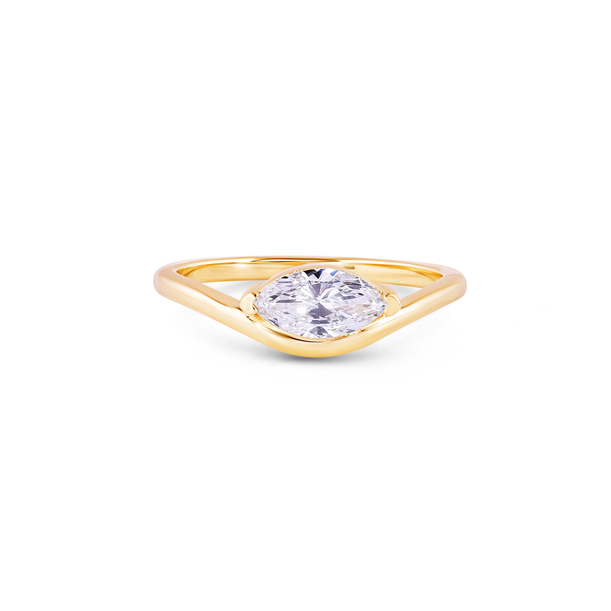 The Aria ring is modern ring features a brilliant marquise-cut lab-grown diamond set in polished yellow gold. The elongated diamond catches the light beautifully, creating a bold yet refined silhouette. Minimal and elegant, it’s designed for effortless wear from everyday luxury to timeless statement moments.