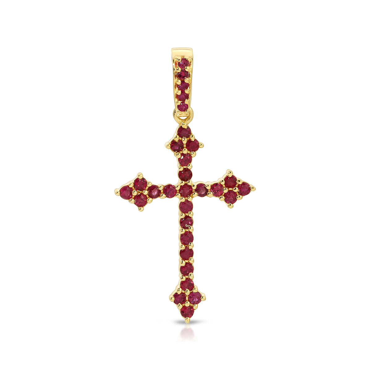 Darkly romantic and boldly symbolic, the Daphne ruby gothic cross evokes strength and timeless edge in an intricately detailed gothic design.