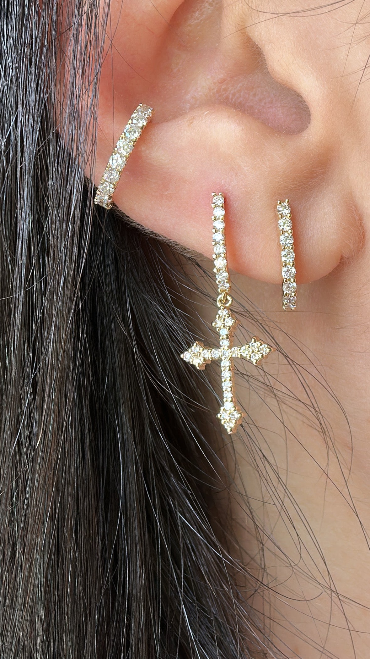 Our Eliza Gothic Cross earrings are dainty perfect for everyday wear. Each pair are perfectly sized for comfort, they are lightweight earrings that hug the earlobe. Finished with high-polish surface.