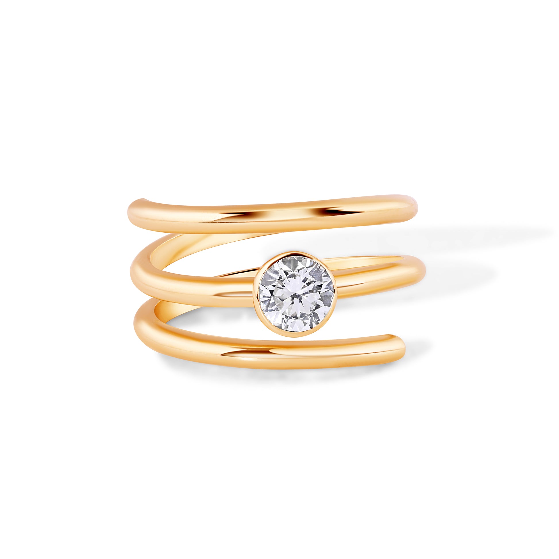 Simplicity meets sophistication. This sculptural 14k gold wrap ring features a single brilliant lab-grown diamond floating between three polished bands that curve gracefully around the finger. Its clean, modern lines highlight the diamond’s brilliance while offering a bold yet understated elegance that transitions effortlessly from day to night.