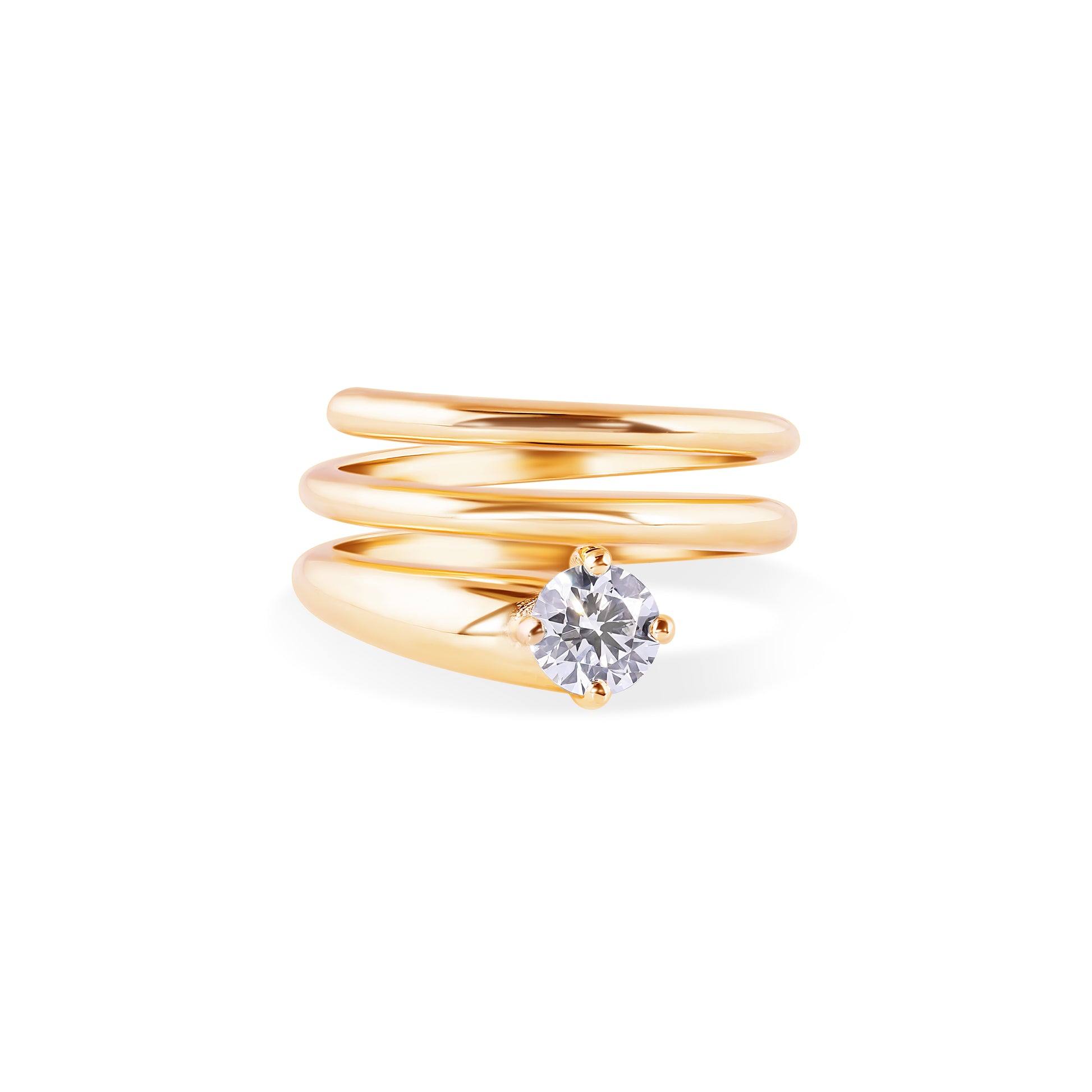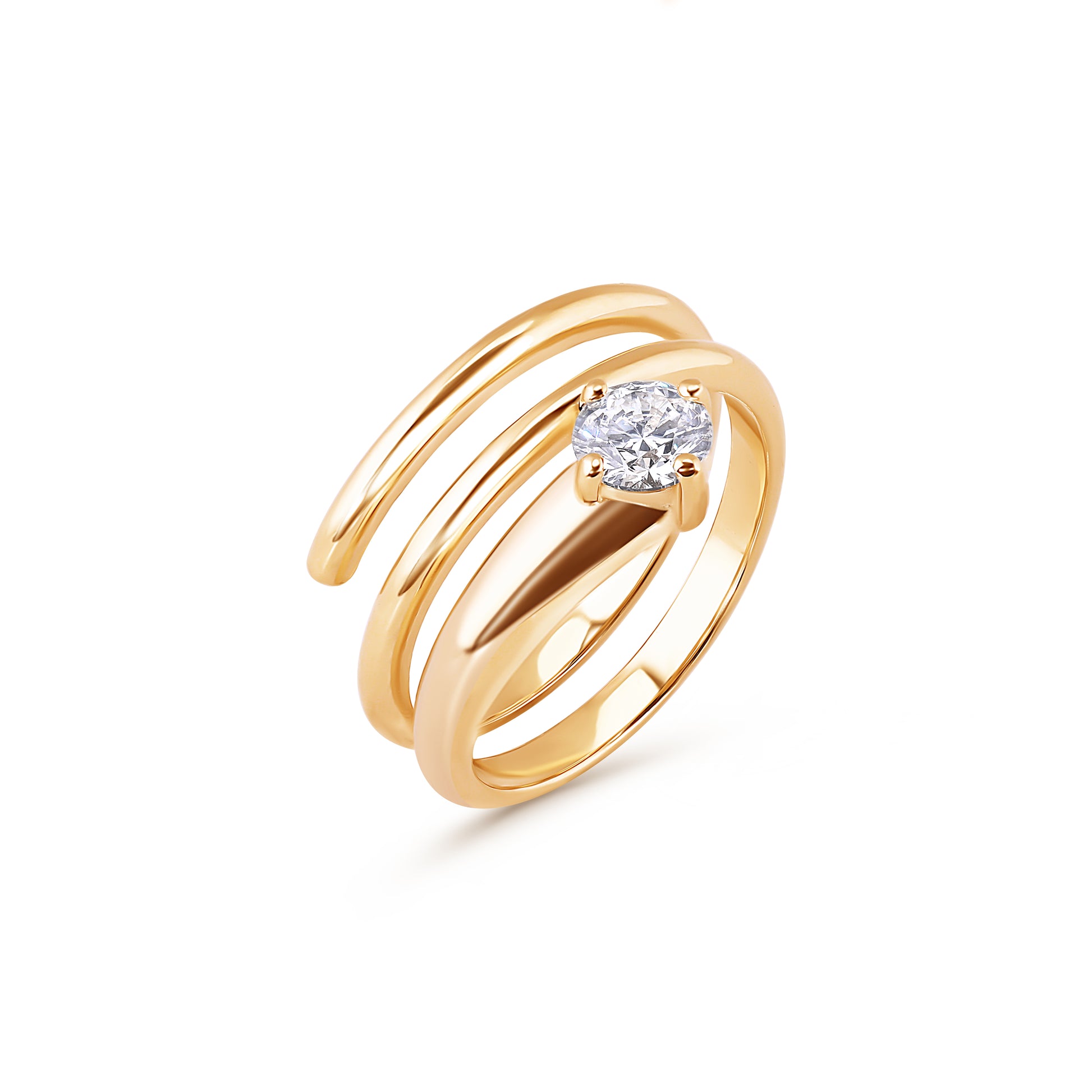 Modern and refined, this ring features a brilliant round lab-grown diamond set against a polished yellow gold triple band. The wrapped design creates dimension and fluidity, while the solitaire diamond adds timeless sparkle. A bold yet versatile piece, it’s perfect worn alone as a statement or stacked for a contemporary look.