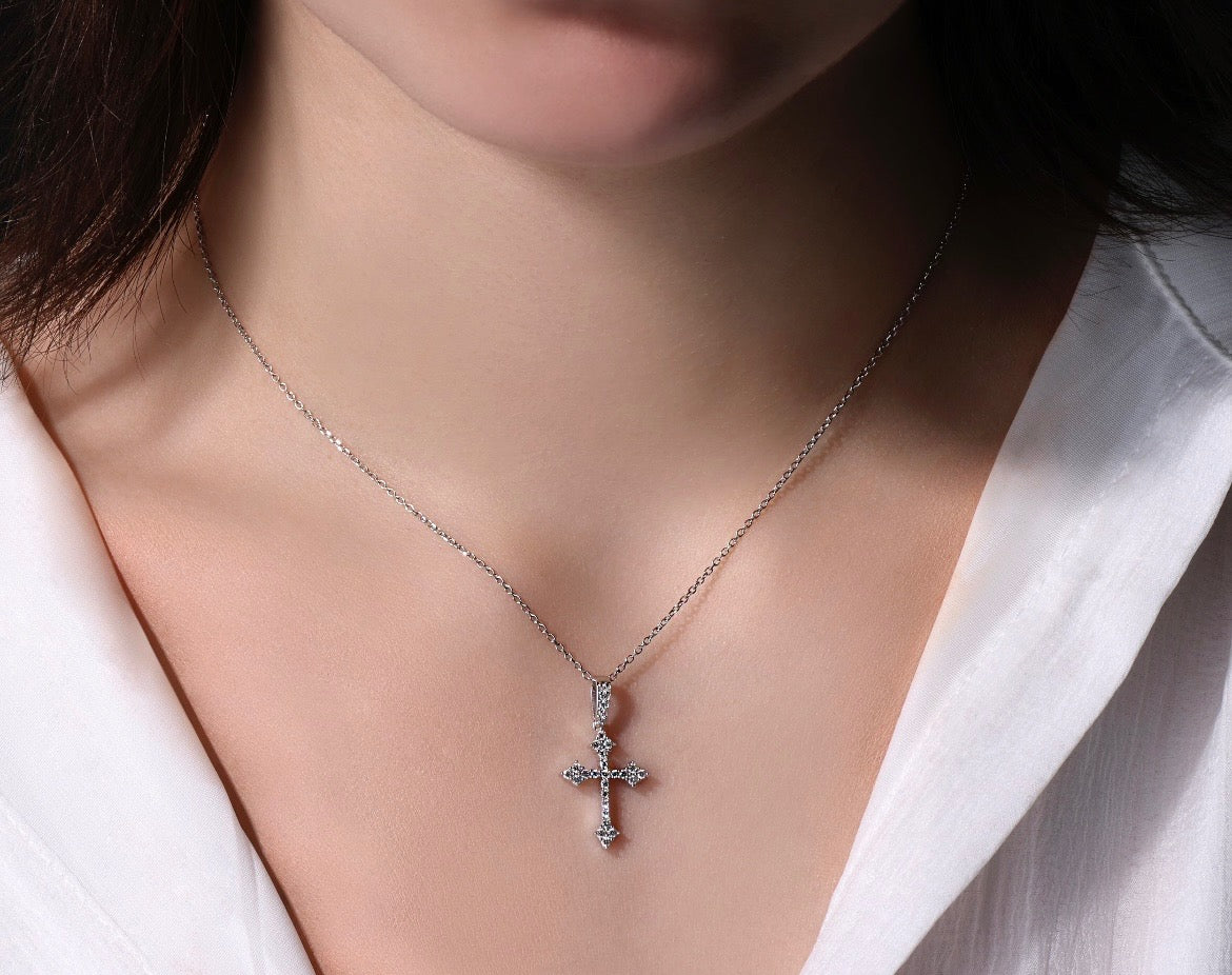 Juliet, our mini gothic cross necklace brings a striking blend of dark elegance and radiant color. Featuring intricate gothic detailing and available in a range of vibrant stones, this dainty yet powerful piece is designed to reflect your unique energy.