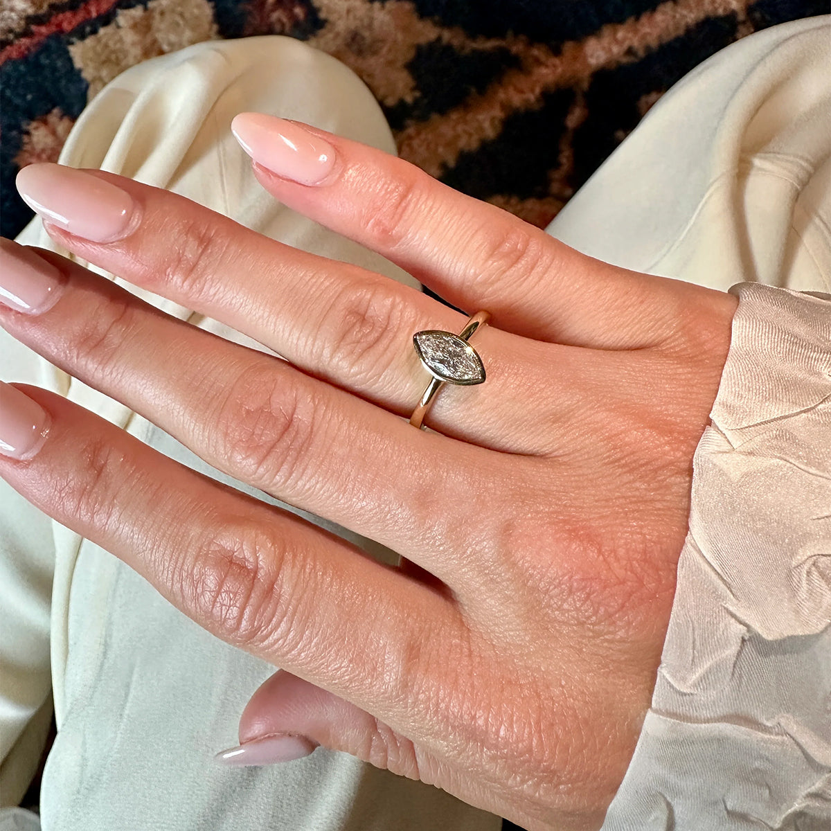 Our Martina lab-grown marquise diamond ring is a celebration of individuality and beauty. With its distinctive marquise cut and brilliant sparkle, this piece is as unique as the one who wears it. Ethically created and beautifully set, it combines modern sustainability with timeless sophistication — a ring that truly makes a statement.