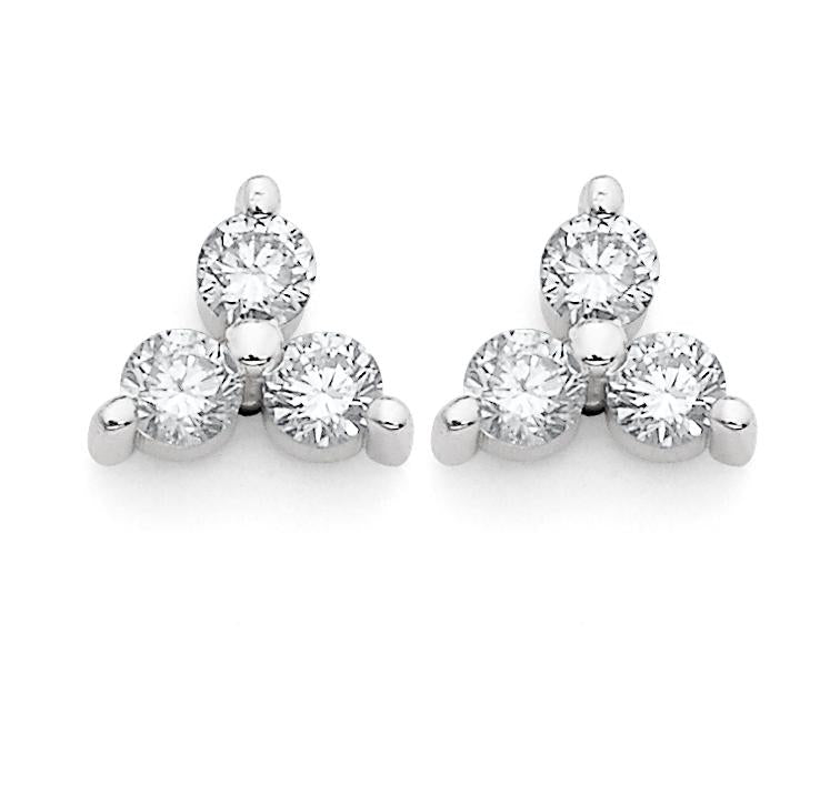 Mercedes, our petite stud features three perfectly matched round-cut diamonds set in a delicate triangular cluster. It’s the perfect everyday piece—minimal yet eye-catching, whether worn solo or as part of a curated ear stack.