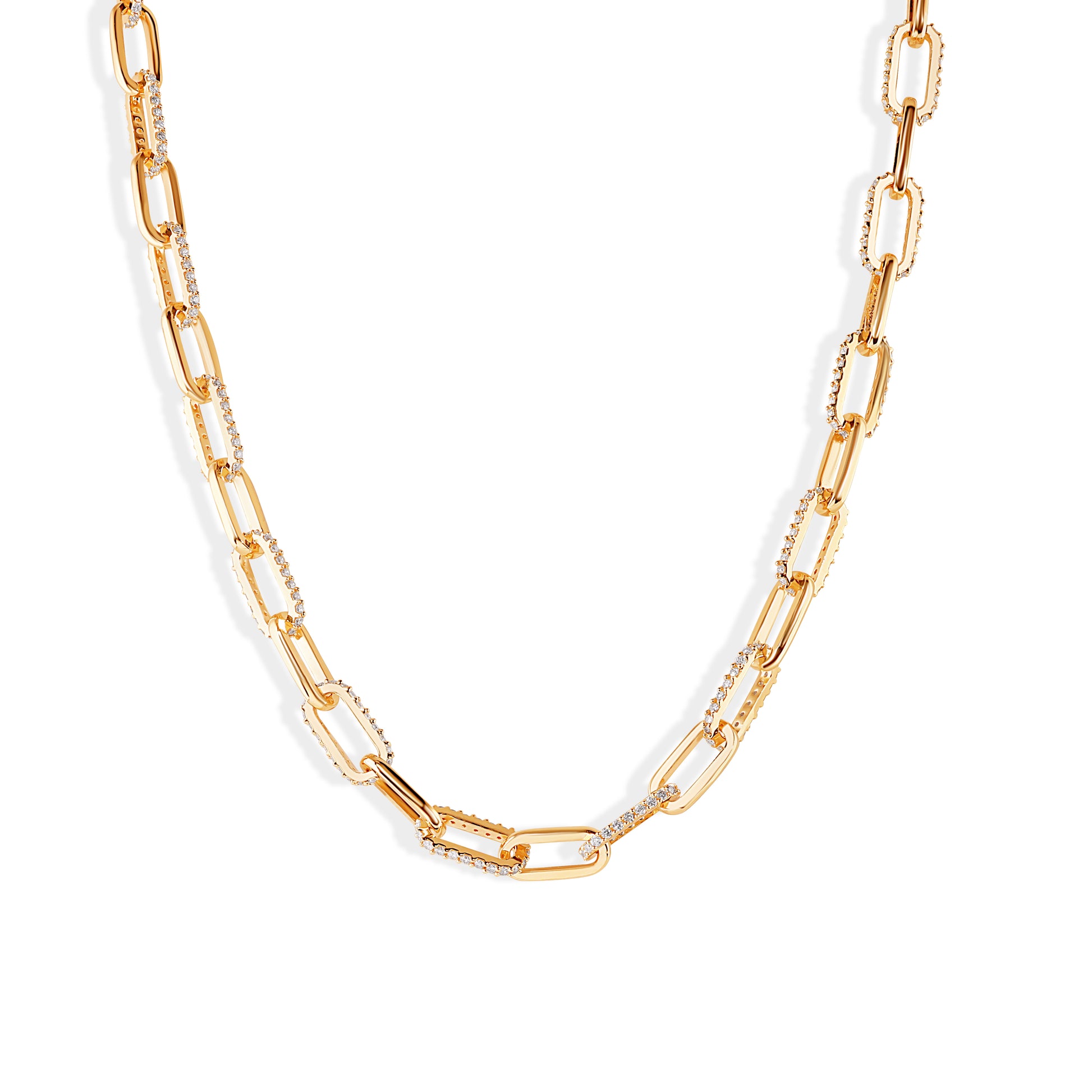 Where edge meets elegance. Our Paloma modern paper clip chain is elevated with hand-set diamonds that add just the right amount of brilliance to its bold silhouette. Designed to stand alone or layer effortlessly, it’s the ultimate statement of refined rebellion—sleek, sophisticated, and unapologetically cool.