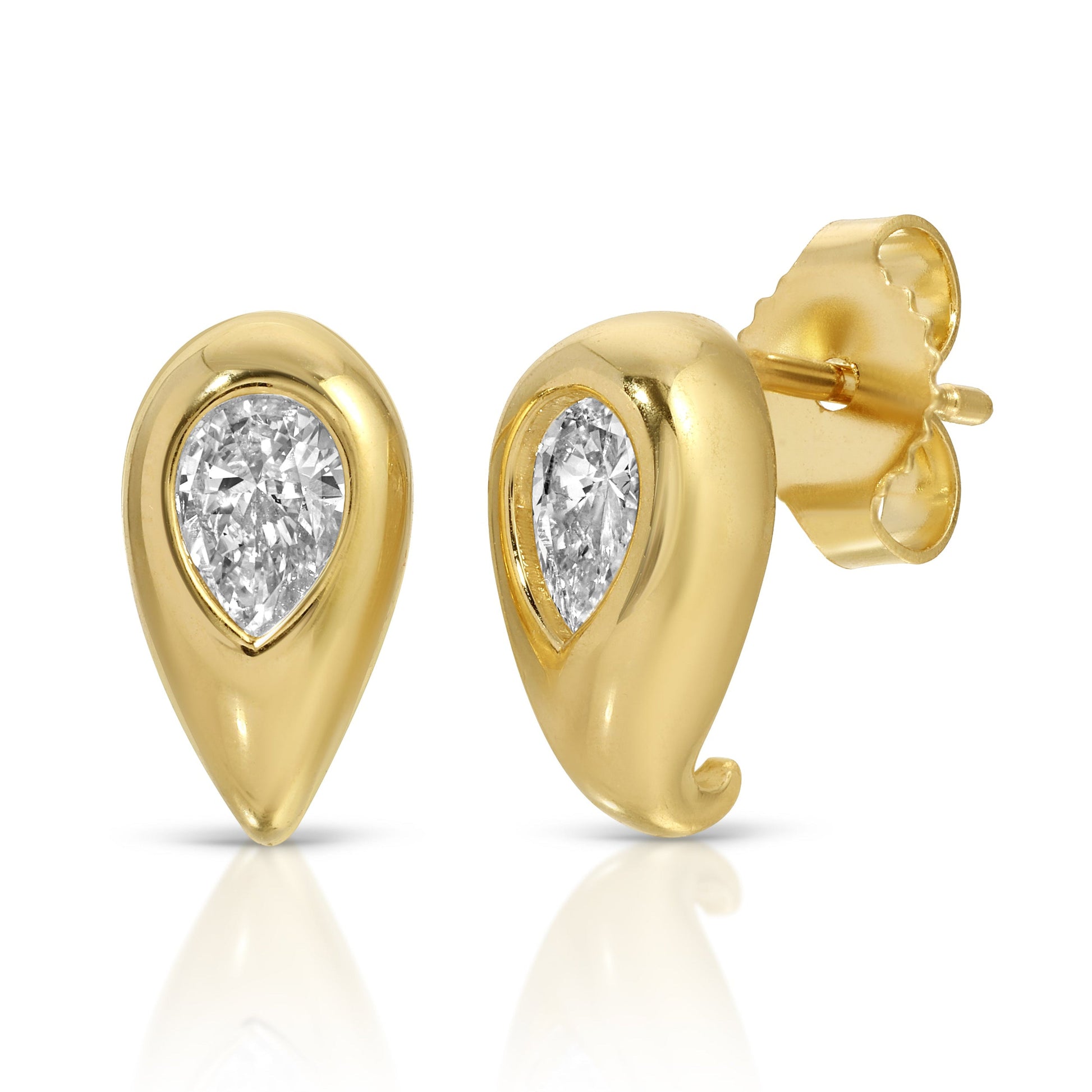 Sleek, modern, and quietly captivating, the Ren earrings bring a fresh, sculptural elegance to your everyday style. Crafted in solid 14k gold, each stud features a pear cut lab-grown diamond perfectly framed by a smooth, teardrop-shaped gold silhouette. The gentle curl at the base adds a unique, artistic touch, giving Ren its distinctive contemporary character.