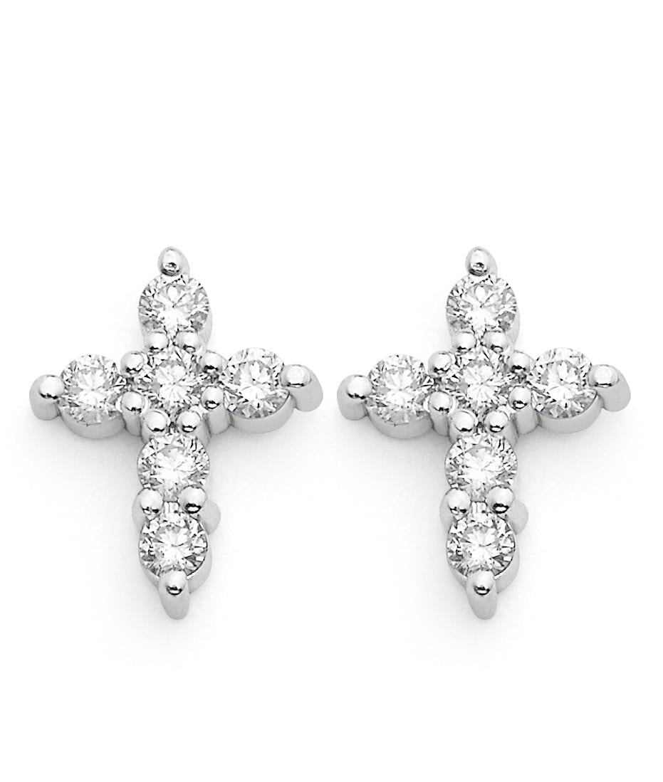 Sabrina, our petite diamond cross stud, features brilliant round-cut stones set in a refined cross silhouette, offering subtle sparkle and timeless elegance. It’s perfect for a minimalist look or to mix and match in a curated ear stack.