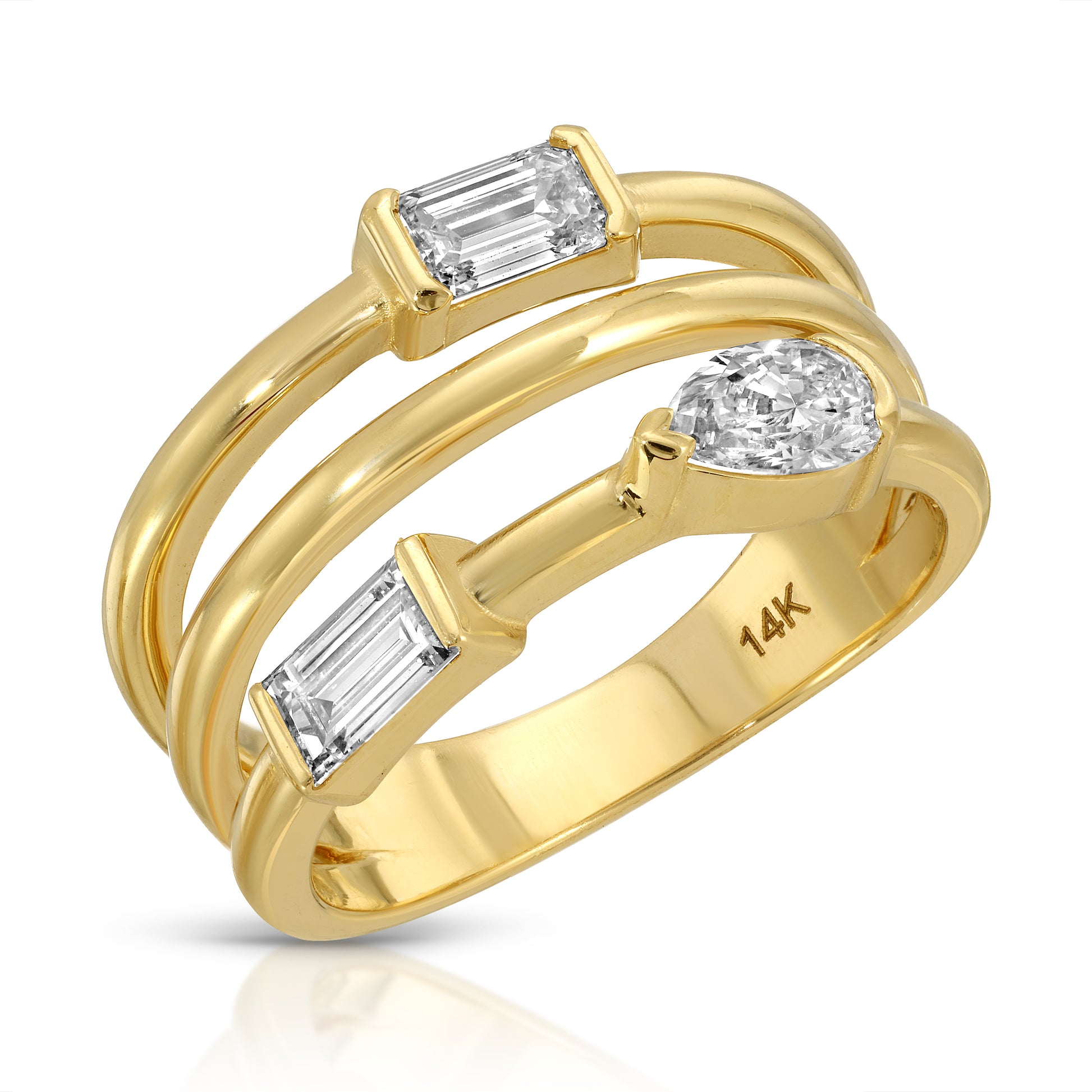 Bold, sculptural, and beautifully refined, the Seraphina ring is a statement piece designed to stand out. Crafted in solid 14k gold, Seraphina features a striking trio of lab-grown diamonds, each set along an elegant multi-band silhouette.